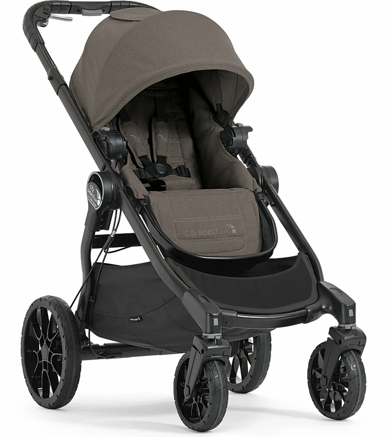The City Selectå¨ LUX converts from a single to double stroller, so your growing family is always ready for any adventure. It has the most riding options of any single to double stroller, with over 20 configurations total. That’s over 25% more than City Select! Add the new bench seat (sold separately) so your older child will also want to hop a ride. Or, add an infant car seat, pram, or second seat to accommodate up to two children of different ages. The fold is 30% smaller and automatically locks, so your stroller is even easier to carry. All-wheel suspension and a decelerating hand brake provide increased comfort and control.