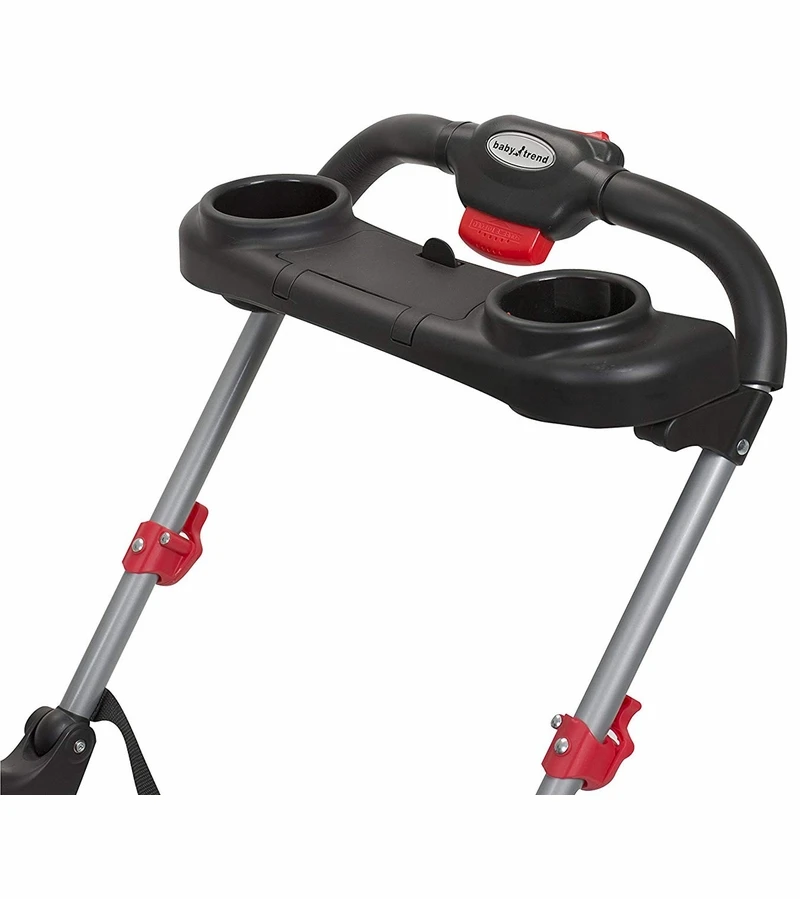 Keep baby secured with the 5-point safety harness, foot-activated dual-rear parking brake and locking wheels. Children can rest in comfort with the reclining seat, rotating canopy, easy access to drinks and snacks with 2 built-in cup holders, and all-wheel suspension for a smooth ride. Make this stroller a travel system by adding a Baby Trend highly rated infant car seats.