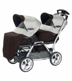 - Children can sit in the front and rear seats of this stroller or stand on the rear platform