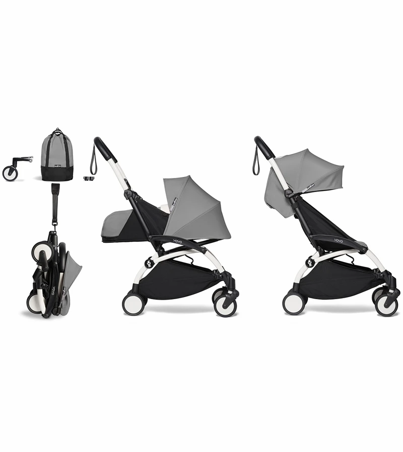 Babyzen YOYO2 Ultra Compact Complete 0+/6+ Stroller & Rolling Bag Bundle – White/Grey
