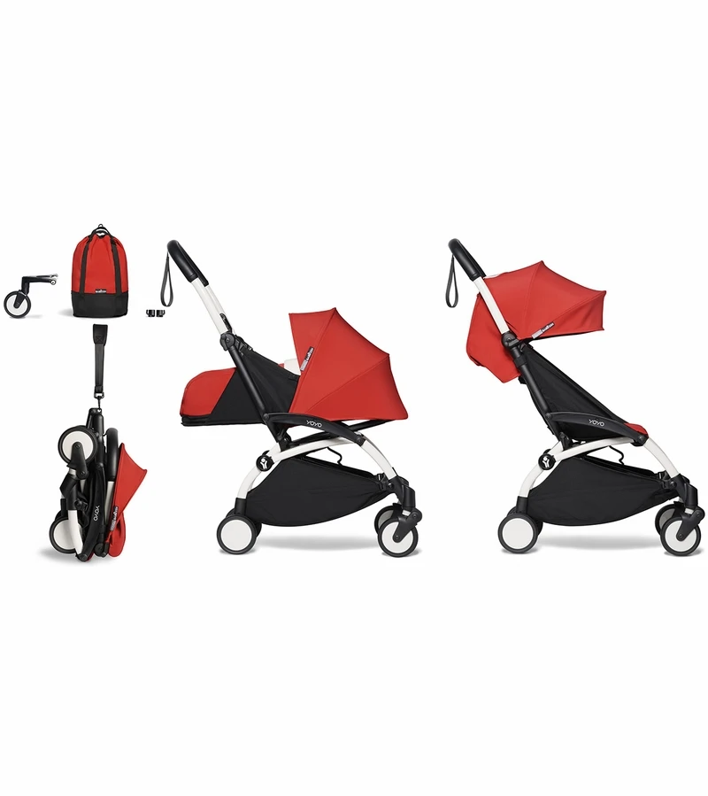 Babyzen YOYO2 Ultra Compact Complete 0+/6+ Stroller & Rolling Bag Bundle – White/Red