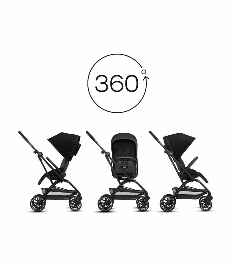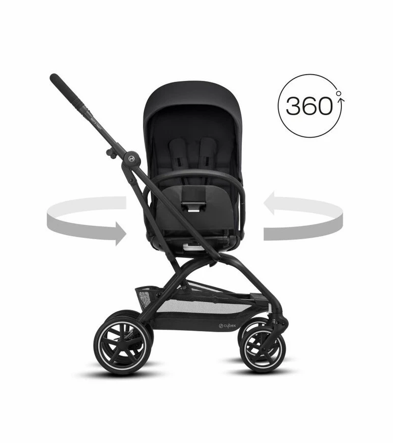 As an all-around urban stroller, the CYBEX Eezy S Twist+2 is the perfect choice for families who want a modern ride that makes travel faster, simpler and more enjoyable. With one hand, you can rotate your child’s seat 360°, from parent-facing to forward-facing in seconds. Ideal for the city lifestyle, the Eezy S Twist+2 folds into a compact, self-standing position, so you can stow and go. Travel with exceptional comfort and ease over a variety of surfaces with big, all-terrain wheels, all-wheel suspension and front-lock swivel wheels.