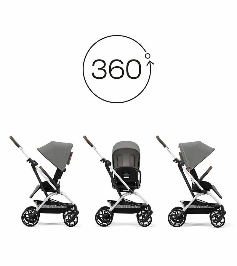 As a compact stroller with a swivel seat, the CYBEX Eezy S Twist+2 makes life easier for parents and more comfortable for their children. With one hand, you can swivel your child’s seat 360°, from parent-facing to forward-facing in seconds. Ideal for the city lifestyle, the Eezy S Twist+2 folds into a compact, self-standing position, so you can easily stow and go.