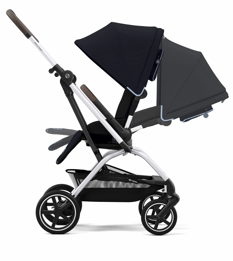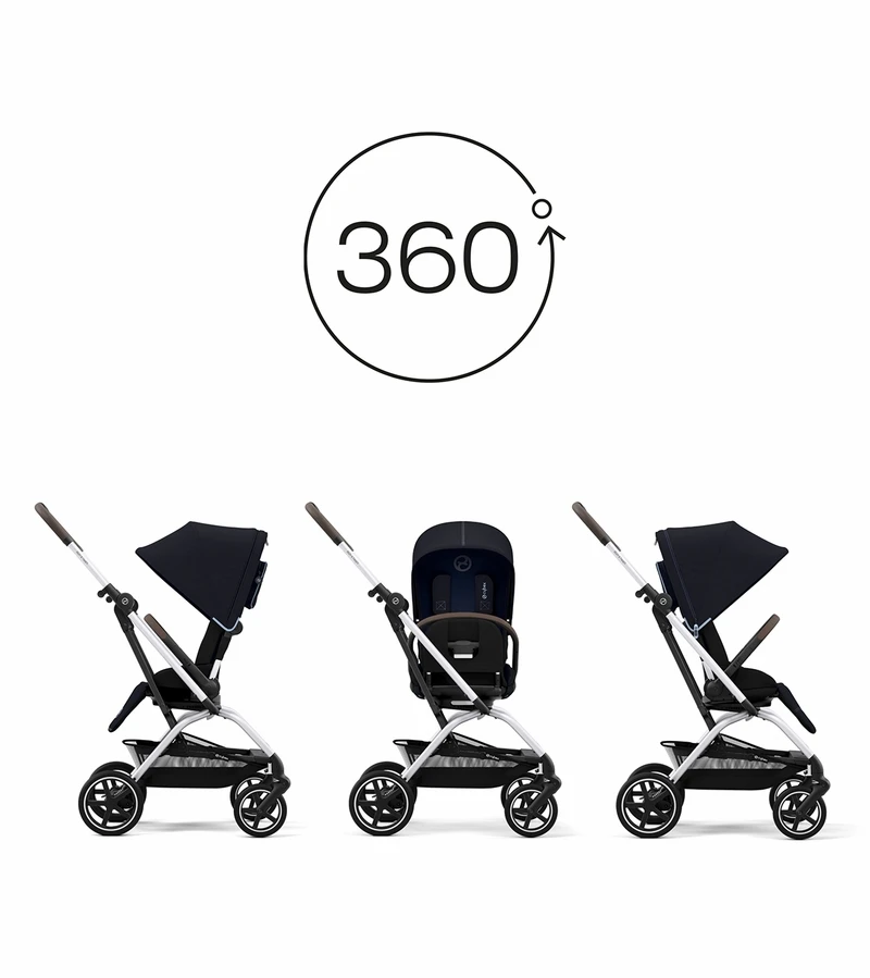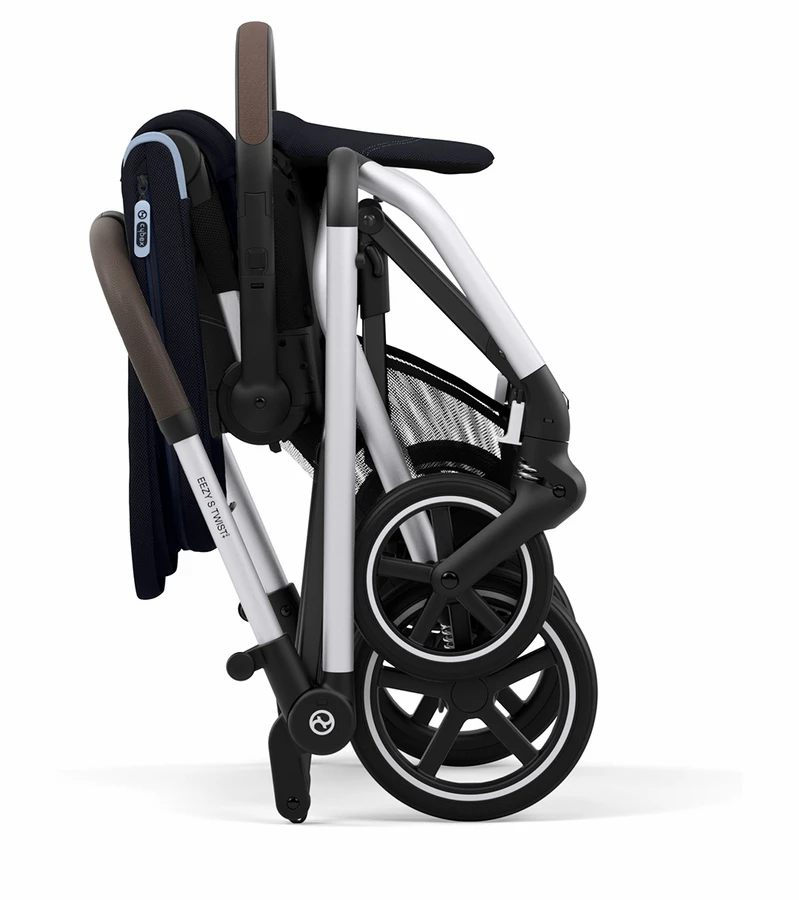 As a compact stroller with a swivel seat, the CYBEX Eezy S Twist+2 makes life easier for parents and more comfortable for their children. With one hand, you can swivel your child’s seat 360°, from parent-facing to forward-facing in seconds. Ideal for the city lifestyle, the Eezy S Twist+2 folds into a compact, self-standing position, so you can easily stow and go.