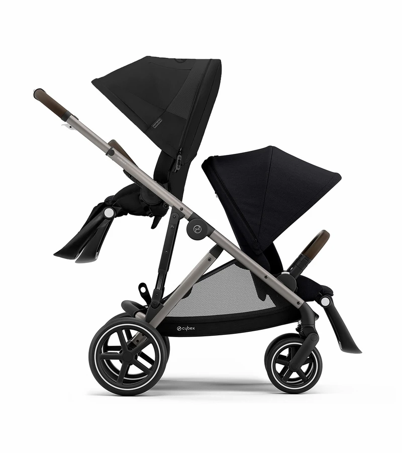 Cybex Gazelle S Double Stroller Bundle – Deep Black / Moon Black (Taupe Frame)