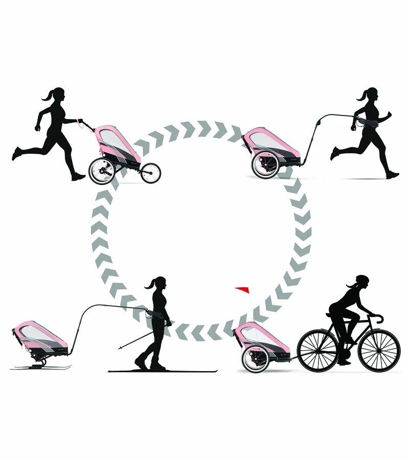Cybex Zeno Multisport Trailer Bundle – Black/Pink Frame + Medal Grey Seat Pack