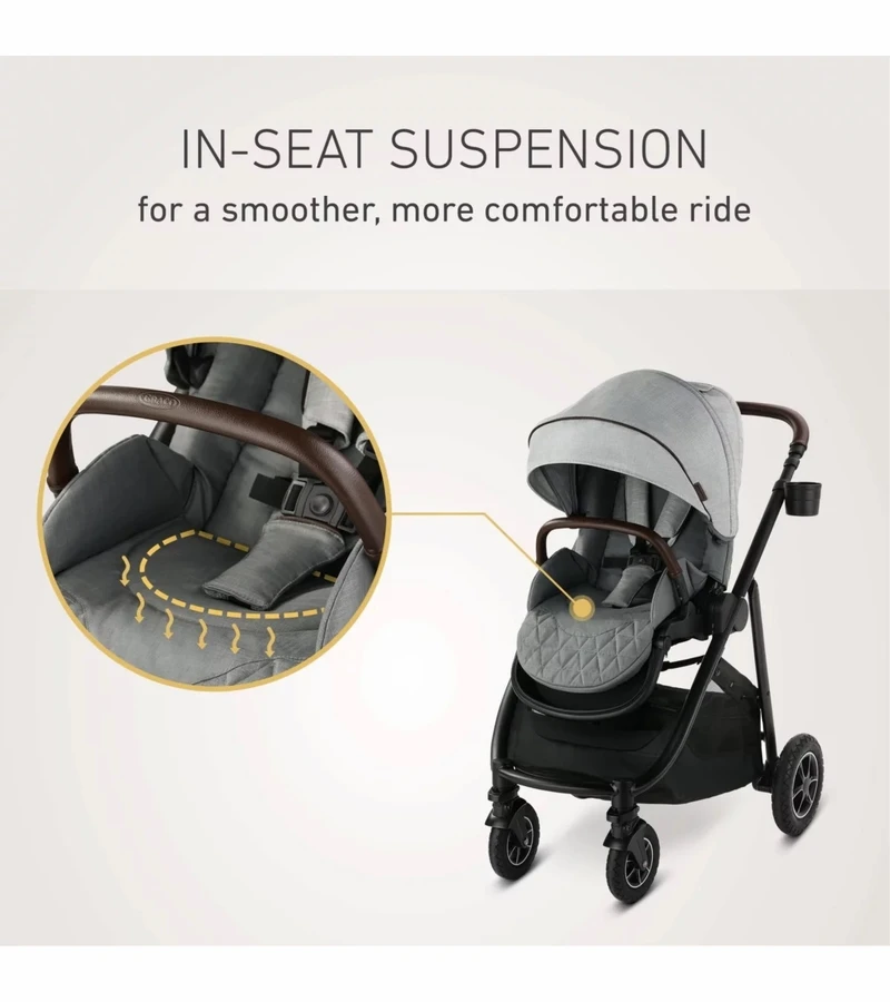 - In-seat suspension helps provide a smoother and more comfortable ride for baby