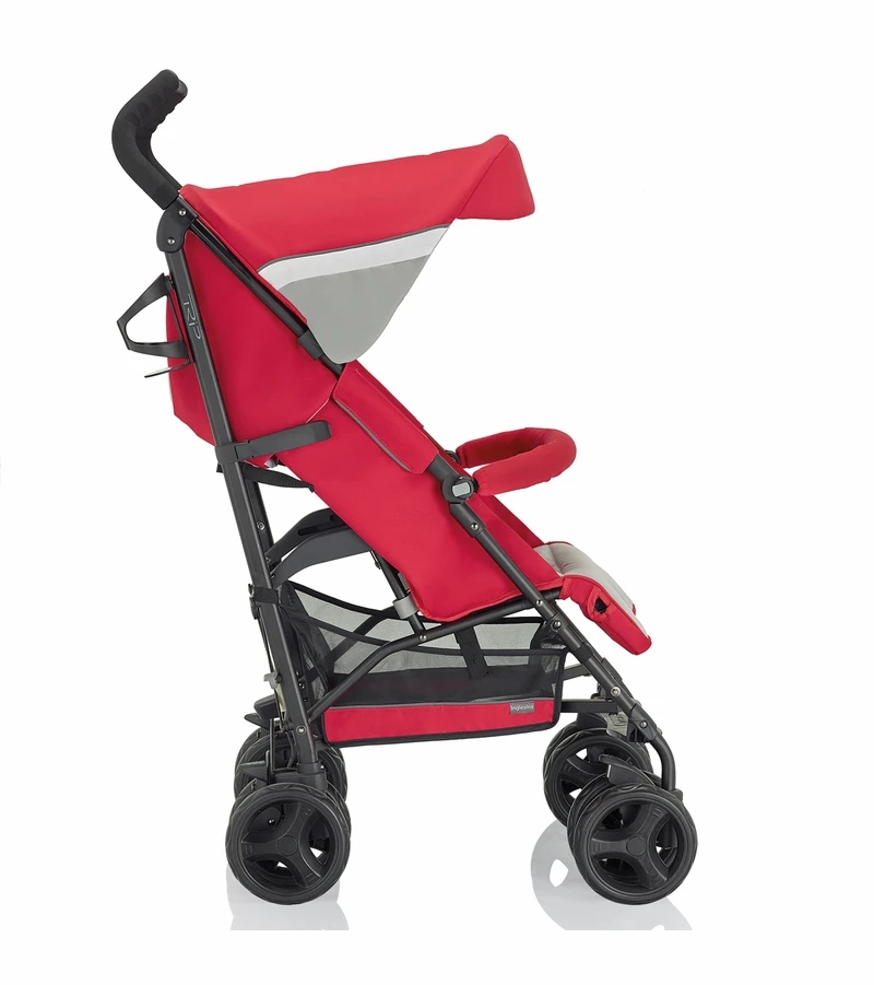 Trip goes beyond the traditional lightweight stroller by offering premium features usually belonging to full-size strollers: 4-position backrest, bumper bar, rear-wheel suspensions and adjustable legrest.