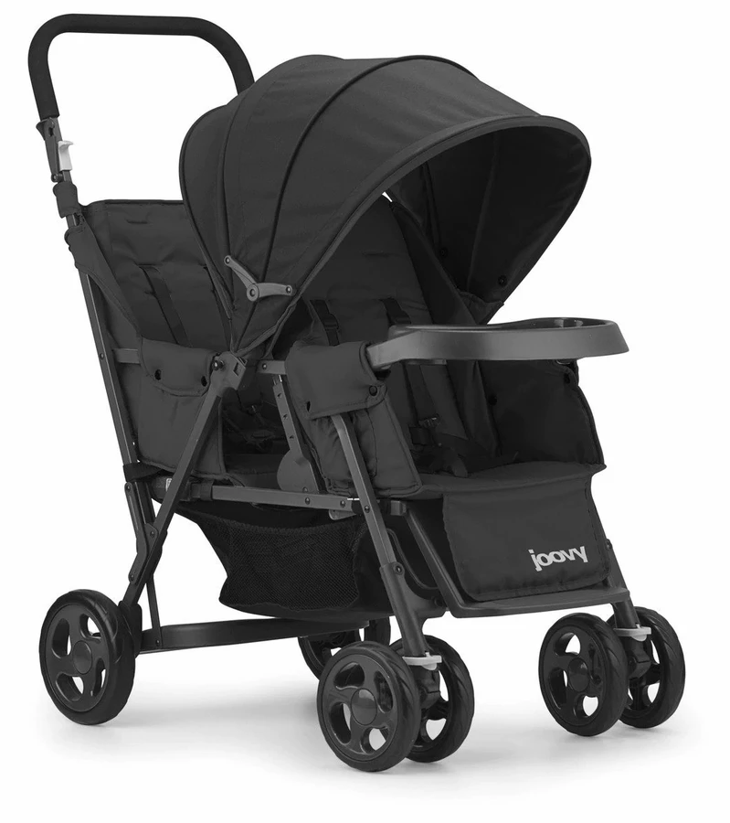 Your family is getting bigger, but why change your stroller if it works for you? The Joovy Caboose Too sit and stand tandem stroller lets two kids ride the way they choose.Â