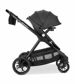 Plenty of room to bring it all, the easily accessible large basket can carry up to 15lbs. of necessities. We also added two mesh compartments in each seat for snacks or toys.