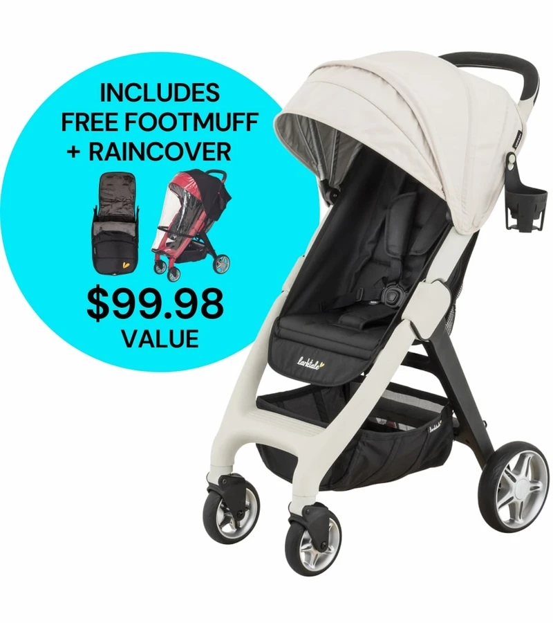 - What’s included: Chit Chat Stroller, Cup Holder, Rain Cover, Foot Muff