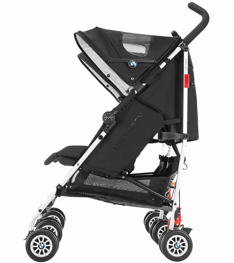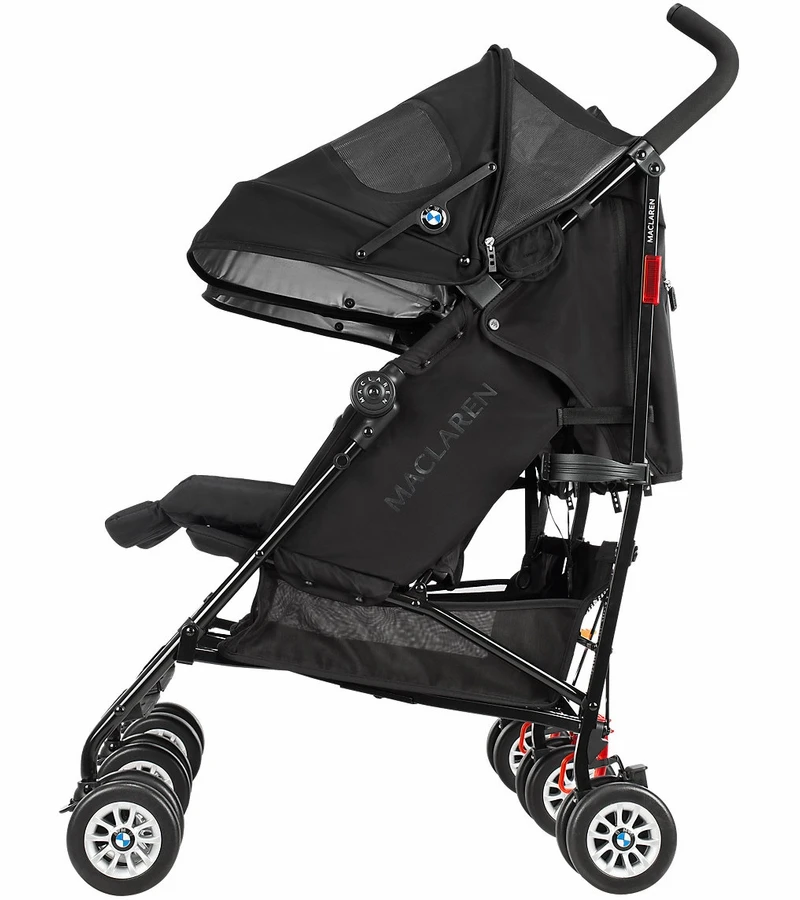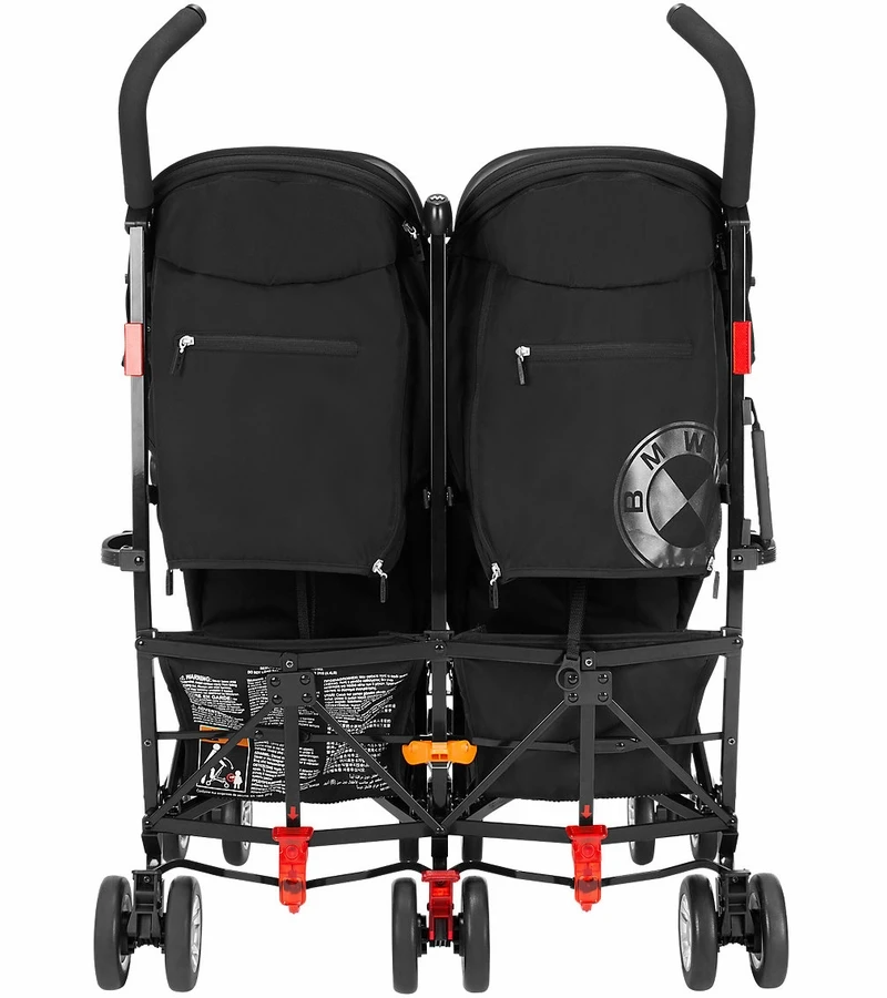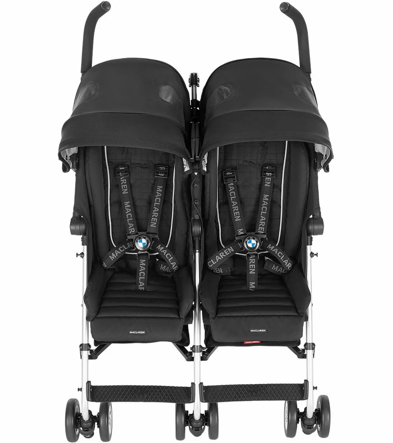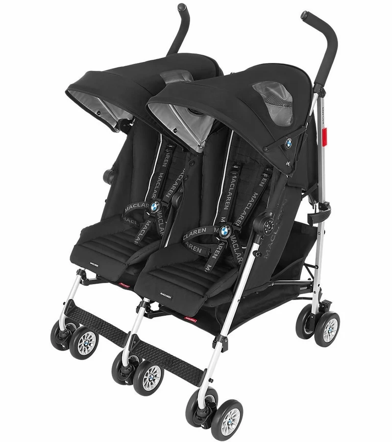 A collaboration of form and function showcasing world-class workmanship. The Maclaren BMW Twin Buggy offers auto-inspired features from the roomy bucket seat to the contoured padded liner and iconic BMW insignia details. Performance driven and responsibly sourced, this stroller is lightweight, simple to steer and offers a full assortment of coordinating accessories.
