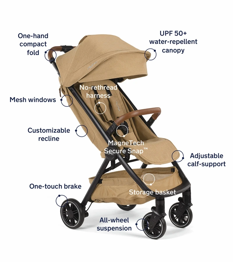 Nuna TRVL Self-Folding Compact Stroller – Camel
