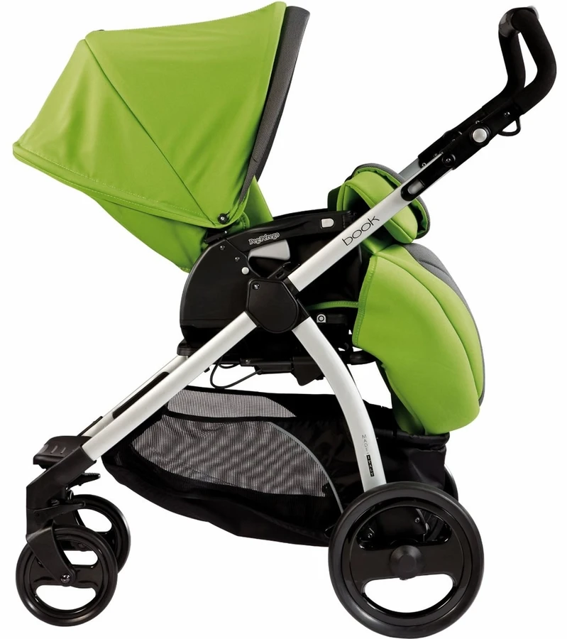 The seat on the Book Plus can adjust to several different positions, including a newborn flat position. Pair the flat recline with the included foot muff to transform the Book Plus into carriage mode. The Book Plus can also easily be converted into a travel system by attaching the Primo Viaggio SIP 30-30 Infant Car Seat directly to the chassis.