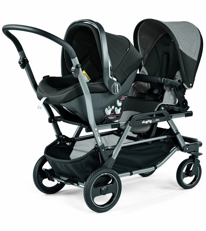 A stroller that offers many incredible combinations! The Duette Piroet is extremely agile, with easy to use swivel front wheels, and allows mobility through most narrow places. It is travel system compatible with two Primo Viaggio car seats–without the need for adapters, and has an extra-large basket that holds all of the necessities for two.