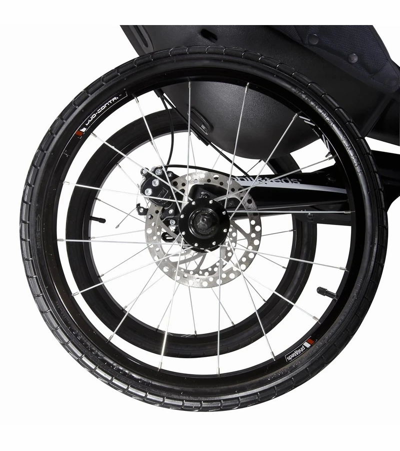 - 20″ rear wheels with pneumatic (air-filled) tires to reduce roll resistance