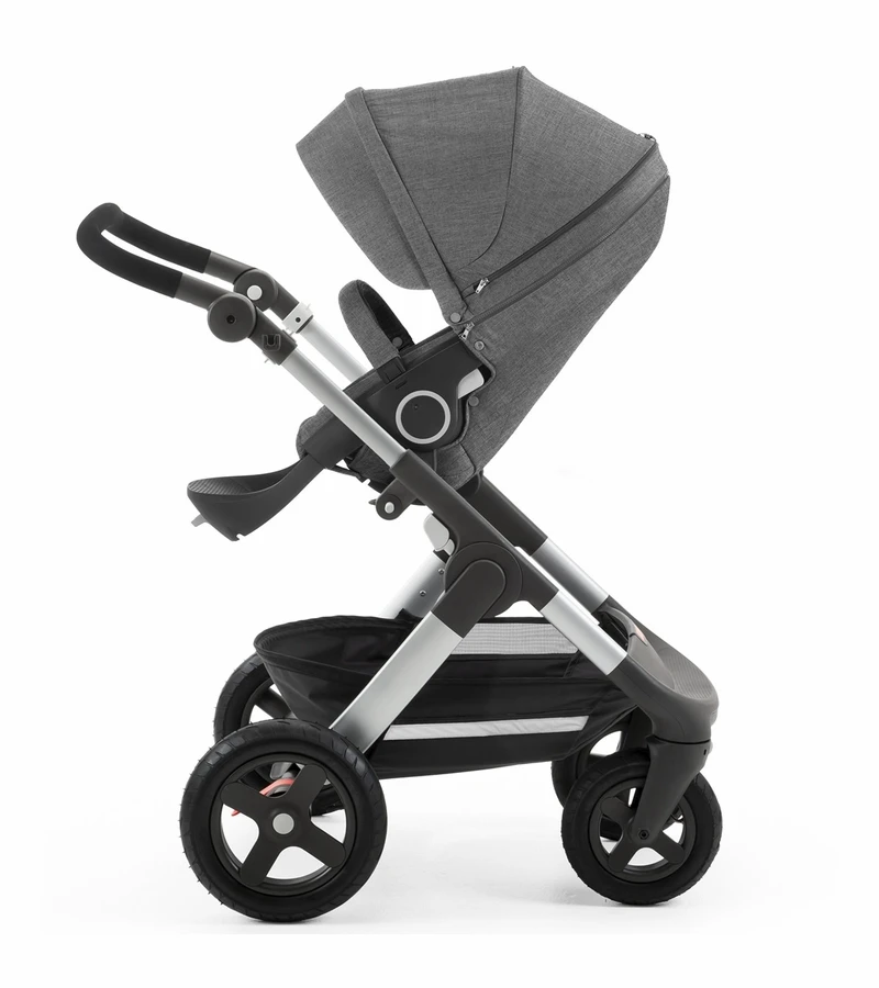 Built for adventure, Stokke Trailz takes you wherever you want to go ? in all seasons and in all terrains. Like all Stokke strollers, the carry cot and seat positions of the Stokke Trailz lift your baby higher to encourage connection between parent and child. Superior maneuverability and effortless steering secure a smooth ride for your little one. Large air filled tires and a spacious waterproof shopping basket make Stokke Trailz the perfect choice for active families who love the outdoors – no matter the weather.