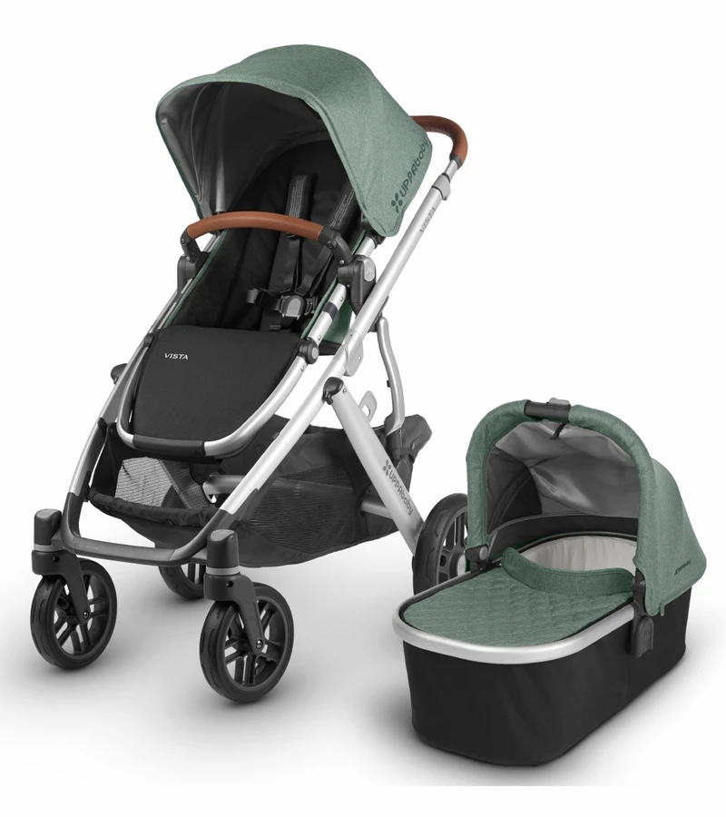 UPPAbaby 2018 / 2019 Vista Stroller – Emmett (Green Melange/Silver/Saddle Leather)
